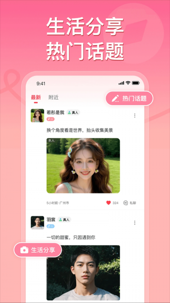 3、用户可以分享生活瞬间,吸引志趣相投的人主动搭讪,还能查看本地发布的最新动态,掌握热门趣事和生活分享。