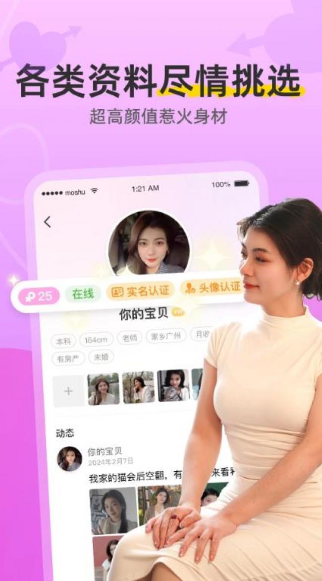 陌熟相亲官方版下载是一款非常实用的手机软件,这里聚集了海量优质单身男女,在这里你可以轻松找到适合自己的伴侣,完全不用担心没有途径结交异性,大大提高了用户脱单的概率,帮你早日遇到适合自己的另一半,非常适合当代年轻人使用,不论是交友还是恋爱都可以满足,为你的闲暇生活带来更多乐趣,遇到喜好的异性也可以主动搭讪聊天,快速推荐双方关系,互相有好感也可以线下见面约会,摆脱单身生活体验恋爱的甜蜜,如果你也喜欢这款软件的话,软件站现有最新版本,那就快来下载吧。