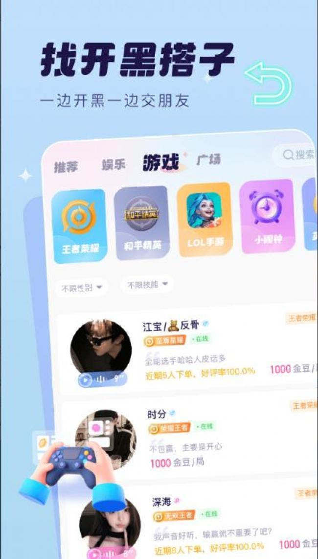 3、提供各种受欢迎的社交群游戏,例如语音聚会,聊天室等,让人可以迅速地寻找好友,加入到互动中。