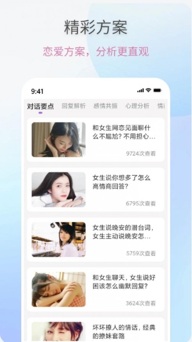 恋爱情话助手官方下载是一款非常好用的恋爱聊天技巧,它可以为你提供优质的社交体验,它可以为你带来丰富的聊天话术,再也不用担心没有恋爱经验,帮你轻松应该各种聊天场景,非常适合想要恋爱或追女孩的用户,种类有很多实战案例可以帮你快速提升自己的恋爱聊天技巧,帮你快速追到自己喜欢的异性,不论是开场白、话题、约会还是邀约各种场景都应有尽有,你可以根据自己的需求自由选择,还可以通过关键词搜索需要的话术,功能非常全面,如果你也喜欢这款软件的话,软件站现有最新版本,那就快来下载吧。