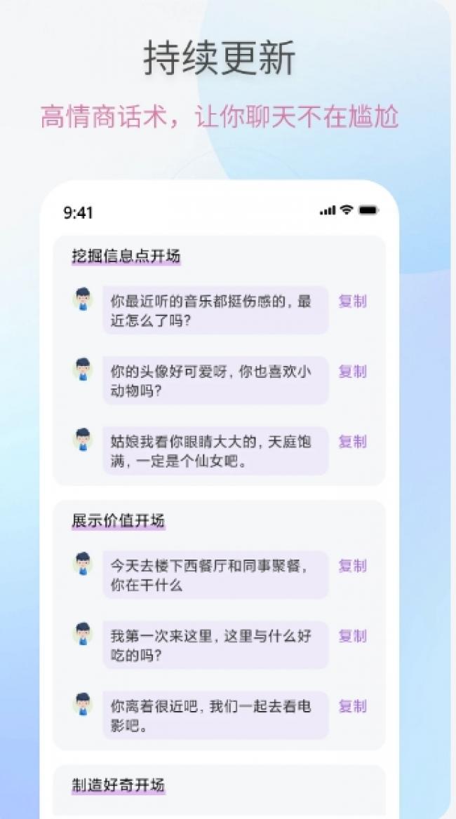 3、这款软件会根据用户的浏览记录,以及他们的习惯,为他们提供最合适的甜言蜜语。