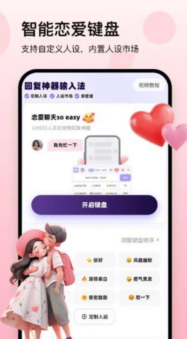 2、回复神器app使用高级智能爱键盘,只要轻轻一按,便可产生回应。