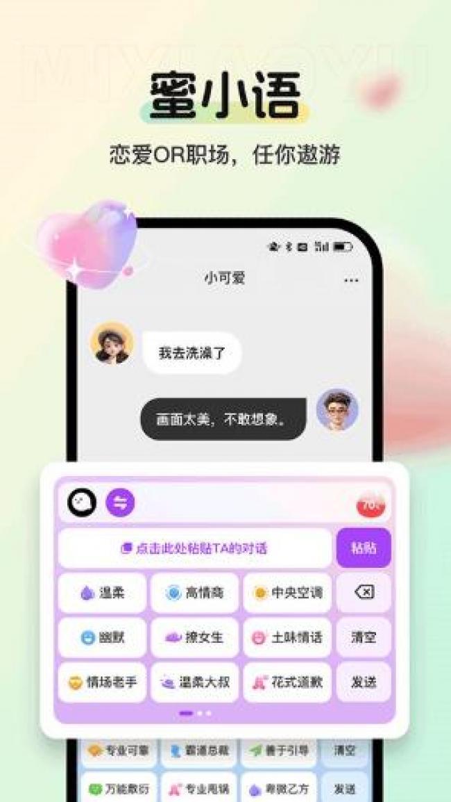 蜜小语app下载是一款非常好用的社交辅助软件,它可以为用户提供各种聊天话术和模版,让你可以轻松应对各种场合,非常适合不会社交聊天的用户,完全不用担心自己说错话的情况发生,能够满足不同用户的使用需求,可以帮你快速提高自己的聊天技巧,追女生或者谈恋爱也可以用的上,让你可以快速拉近双方的距离,让恋爱更简单甜蜜,功能非常全面还有各种实战案例,为用户带来了全面的服务,深受用户喜爱,如果你也喜欢这款软件的话,软件站现有最新版本,那就快来下载吧。