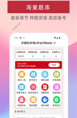 初级护师考试题库app下载是一款为初级护师考试的学习软件,其中收录了海量的考试题库资源,用户可以根据自己的需求来进行选择,实时的进行在线刷题练习,能够更好的提高自己的考试成绩,而且里面的入库还会进行不断的更新,满足不同用户的刷题练习需求,同时还会自动记录你的错题进行整理,每一道题都有最详细的解题思路和答案,能够及时的帮助你进行巩固复习,提高学习的效率。并且还能支持用户进行搜题寻找答案,用户可以快速的获取自己需要的答案解析,极大了方便用户学习使用。喜欢的伙伴们快来下载试试吧。