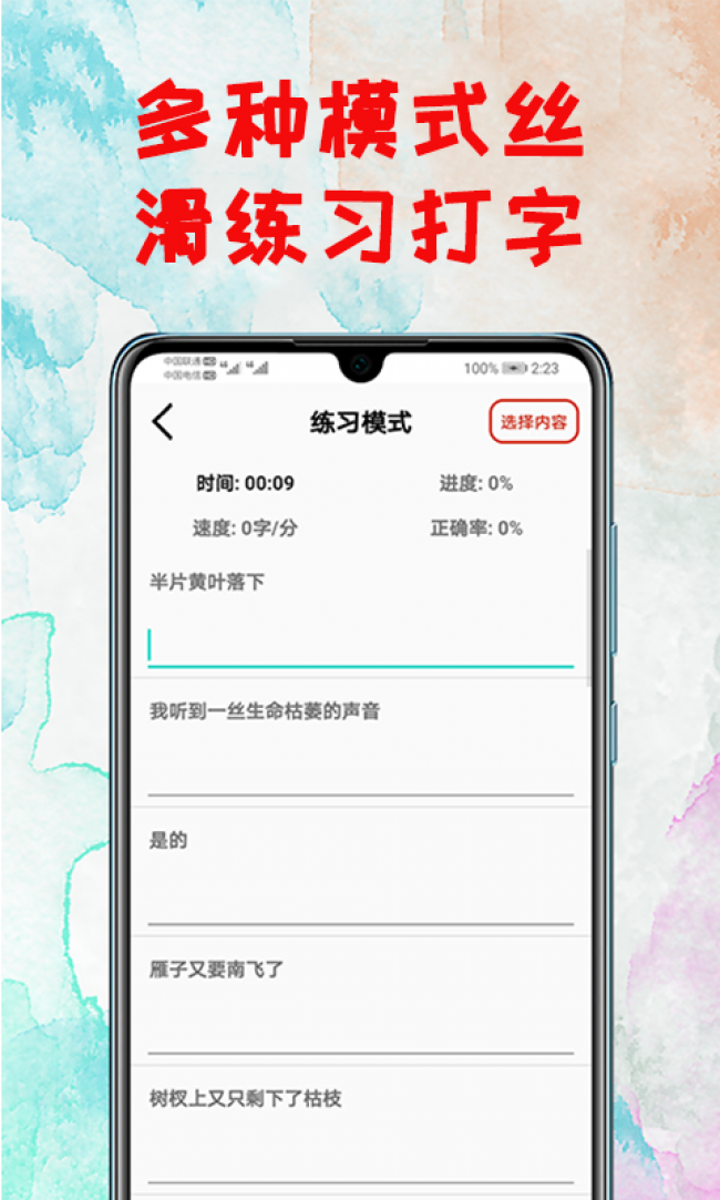 1.每天轻松的在手机上打字练习,不用打开电脑,手机就可以完成操作。