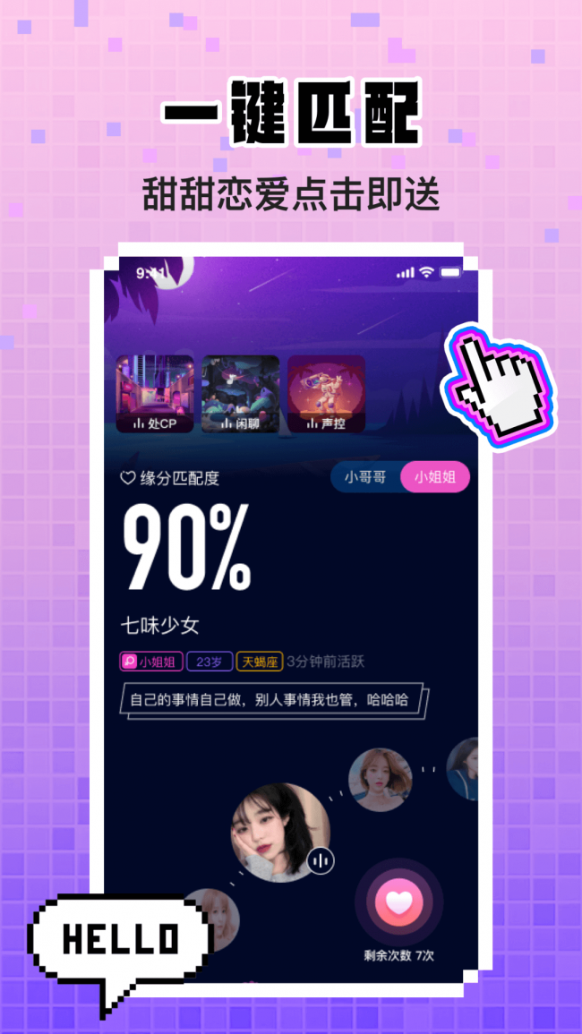 3、1V1:随机匹配,邂逅专属,扩展朋友圈:交友、闲谈、心事快谈不完;