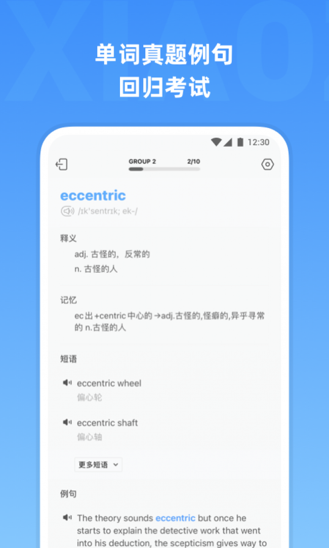 1、雅思单词app下载安装提供剑雅核心词汇高亮显示功能,结合原文例句帮助用户更深入地理解和掌握单词;