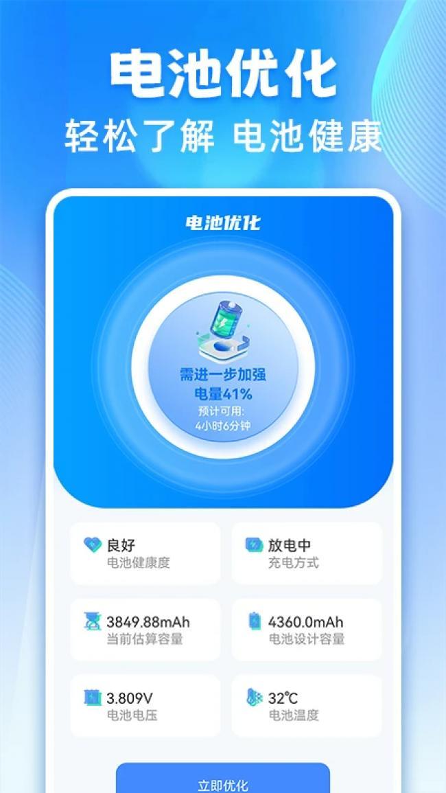 2、电池医生检测app下载专业的电池医生、电池管家,是安卓手机省电优化、充电加速和电池修复帮手,实时关注手机电池健康。