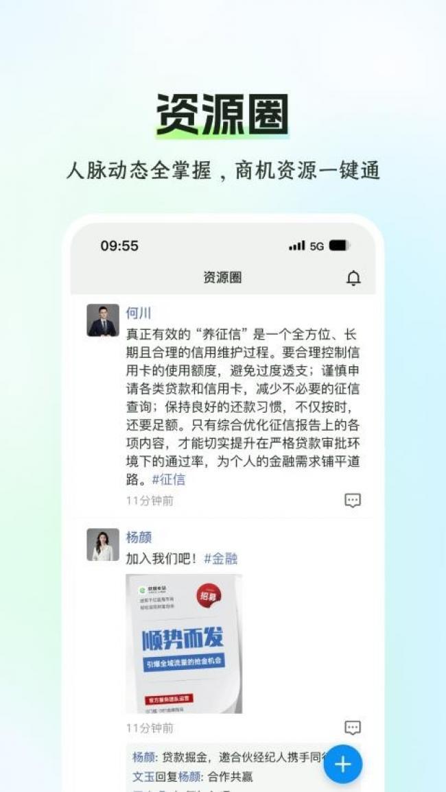 1、在资源圈中可以查看到全部的人脉动态信息,了解所有人脉的动态详情。