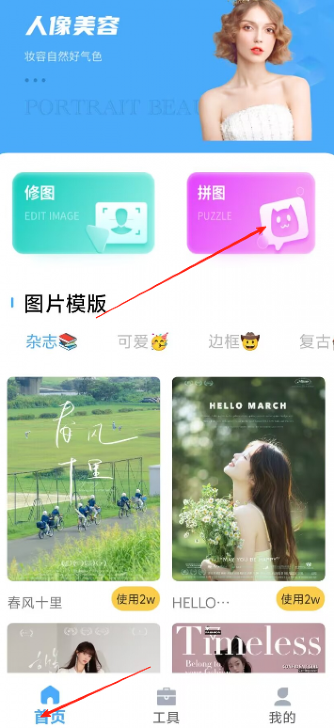 2. 能导入多张图片进行裁剪和拼图,打造新的风格,增添故事感和氛围感。