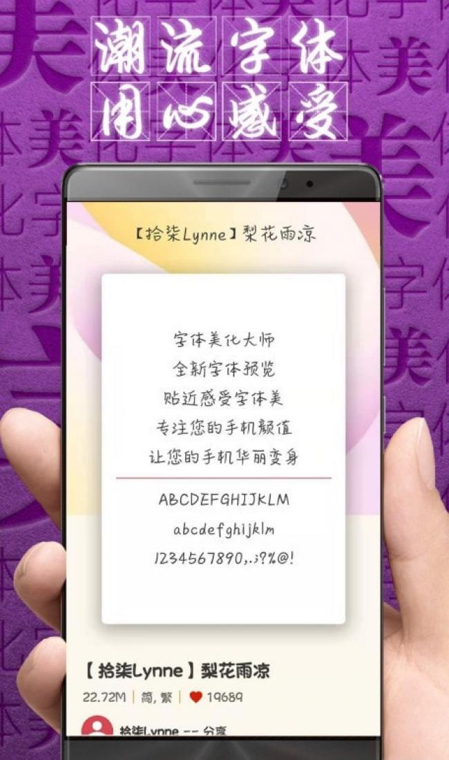 字体美化大师免费下载是一款专为手机用户打造的优质字体美化软件,它收录几千种趣味十足的潮流字体,您可以根据个人风格以及类型来自由选择,海量的字体全部都是免费使用的,并且使用过程没有任何广告打扰,也可以根据个人需求来定制属于自己的字体,并且平台每日都会更新各种精彩纷呈的字体供您选择,完全不需要担心字体样式不好看,不够用的问题,新鲜感天天享不停,您还可以一键分享给朋友,家人喜欢的字体,让更多人发现它的贴心与强大,发挥自己的灵感,来设计不一样的字体,满足您的一切字体美化需求哦,喜欢的伙伴们快来下载试试吧。