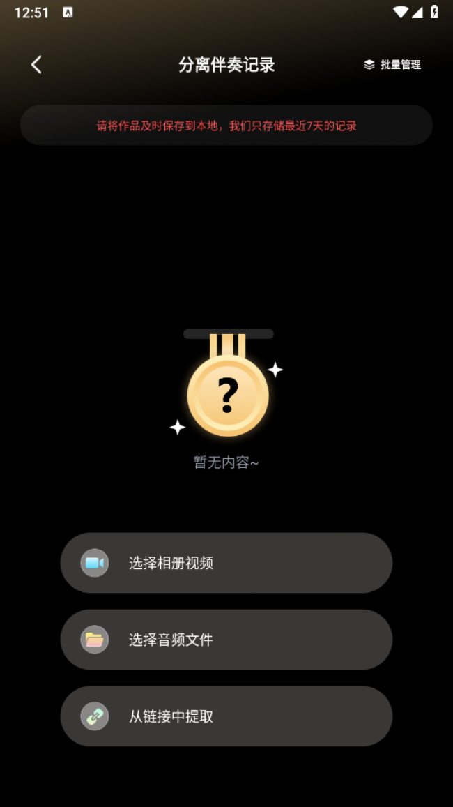 2、金牌录音软件下载运用分离伴奏工具提取出音频的人声以及伴奏声音;