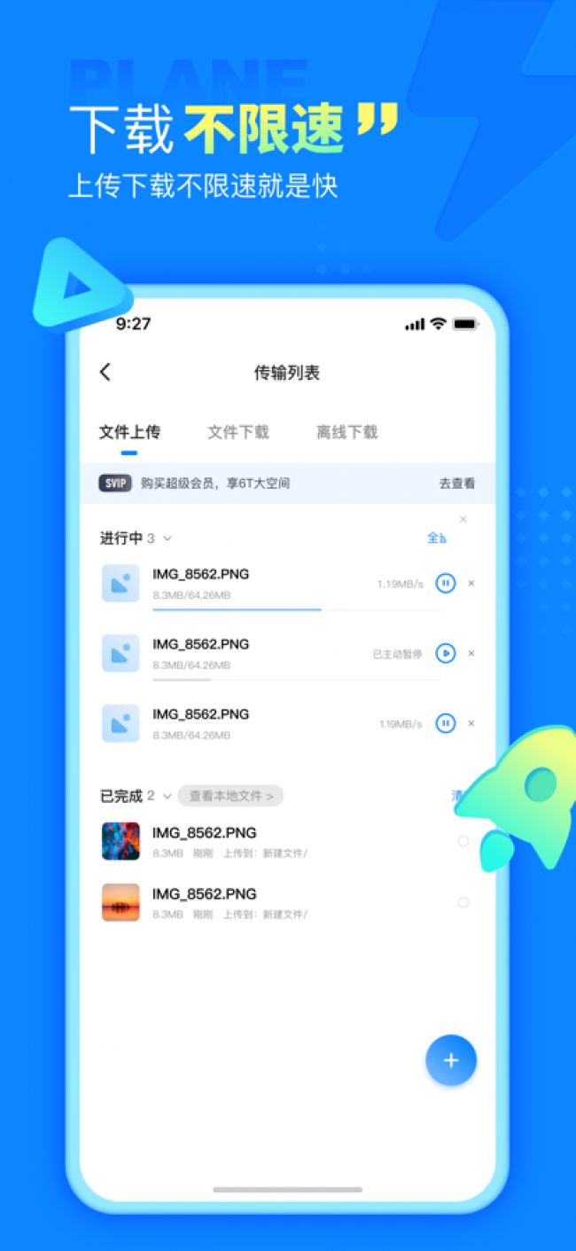 小飞机网盘官方版下载是一款高效实用的云存储软件,专门为需要海量数据存储的用户设计,其中拥有最独特的云存储和cdn技术保证了文件上传和下载的速度能够达到急速,让你不再会因为速度问题而影响信息的获取,并且平台还能支持多种格式的传输,包括文档、音频、视频等多种内容,还为你提供超级大的存储空间,可以随时在手机、平板或者是电脑上进行管理文件。其中还包含了许多实用的小工具,能够让你的查看和分类变得更加的便捷,还为你提供强大的隐私保护服务,让你的文件内容不会泄露出去。喜欢的伙伴们快来下载试试吧。