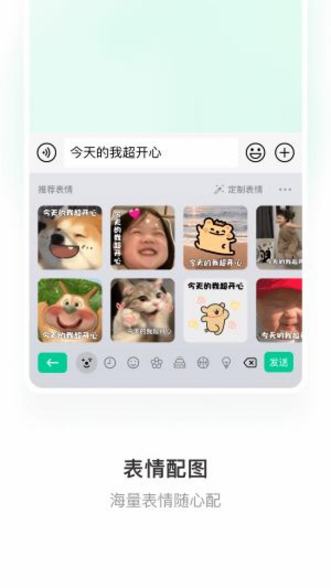 1、微信输入法app支持表情联想输入功能,文字输入后自动推荐相关微信表情和emoji表情。