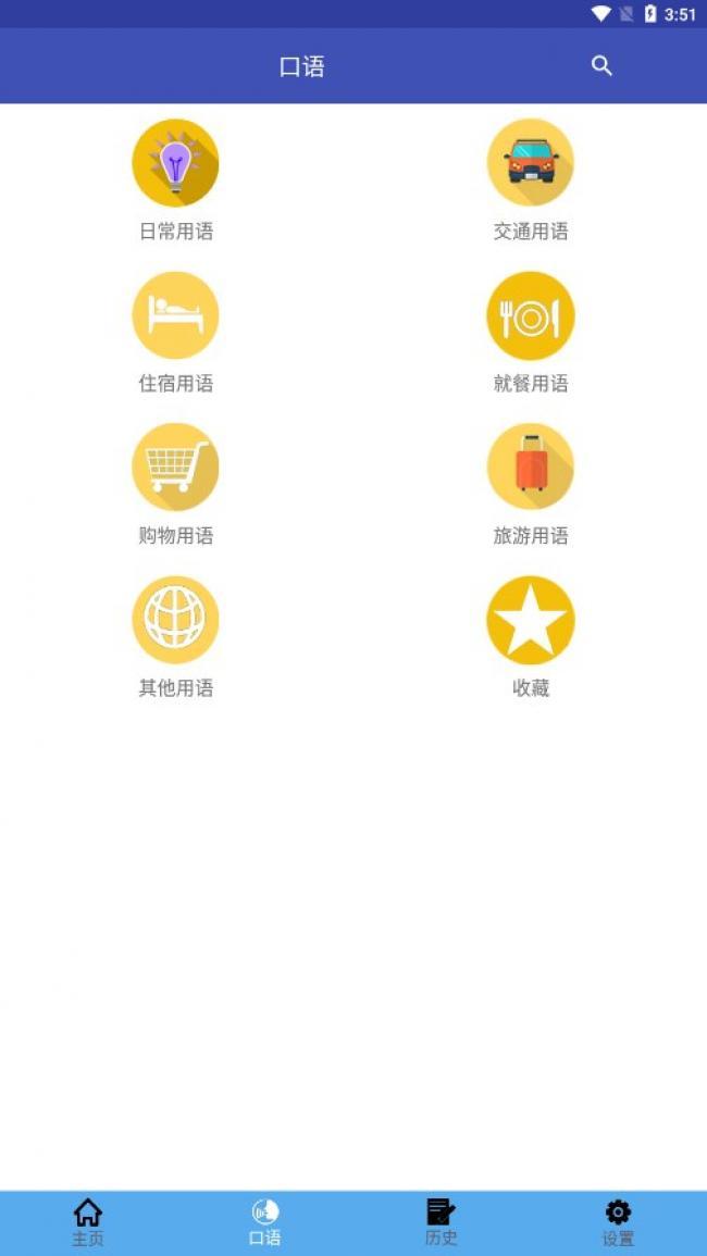 3、一目了然的口语专区,提供有日常用语、交通用语、住宿用语、购物用语等;
