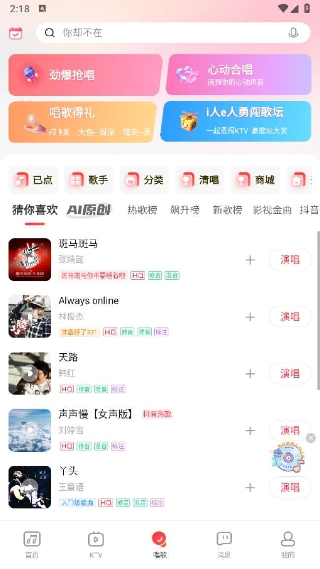 唱吧app官方下载是一款专为喜爱唱歌用户打造的在线K歌平台,在社会中,存在着许多的用户都喜欢唱歌,并且唱的非常不错,经常因为想一展歌喉找不到朋友一起去KTV嗨歌,而唱吧刚好可以满足您的一切K歌需求,它可以让您随时随地的进行唱歌,支持多端设备登录,海量的歌曲可以满足不同用户的唱歌风格,顶尖的音效搭配上强大的修音功能,让您唱的歌曲更加动听,不仅仅可以独自唱,还可以叫上朋友一起合唱,以及开房间唱歌等都可以满足哦,对于其他用户唱的歌曲还可以在线评论,送花,点赞等,让美妙的歌声陪伴您的日常生活,喜欢的伙伴们快来下载试试吧。