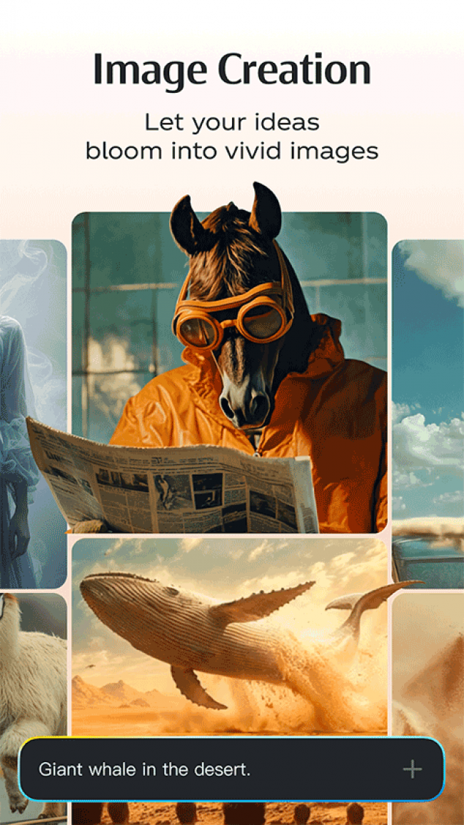 1、用自然语言描述你的想法,即梦AI将为你生成独一无二的图片。不满意?我们支持编辑功能,让你的创意更加完美。