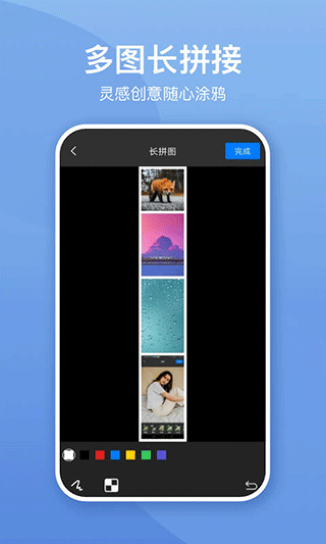 3、专业的拼图工具允许自由调整边框和背景,同时支持长图拼接,满足多样化需求。