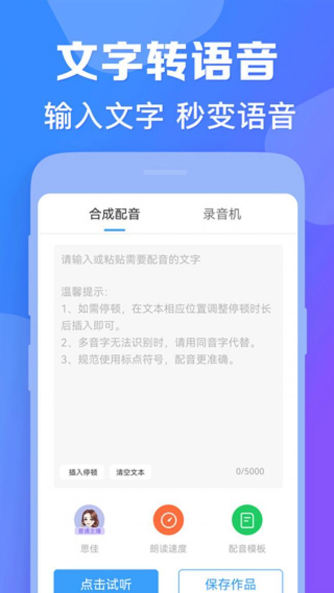 2、专业的文字转语音软件,一键即可合成语音,还可以自定义语速、感情等。
