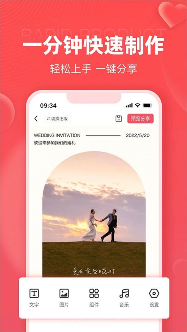 1、用户可以轻松地将定制好的请柬通过微信、朋友圈、QQ空间等多种社交平台分享给亲朋好友,方便快捷地传递喜悦与信息。