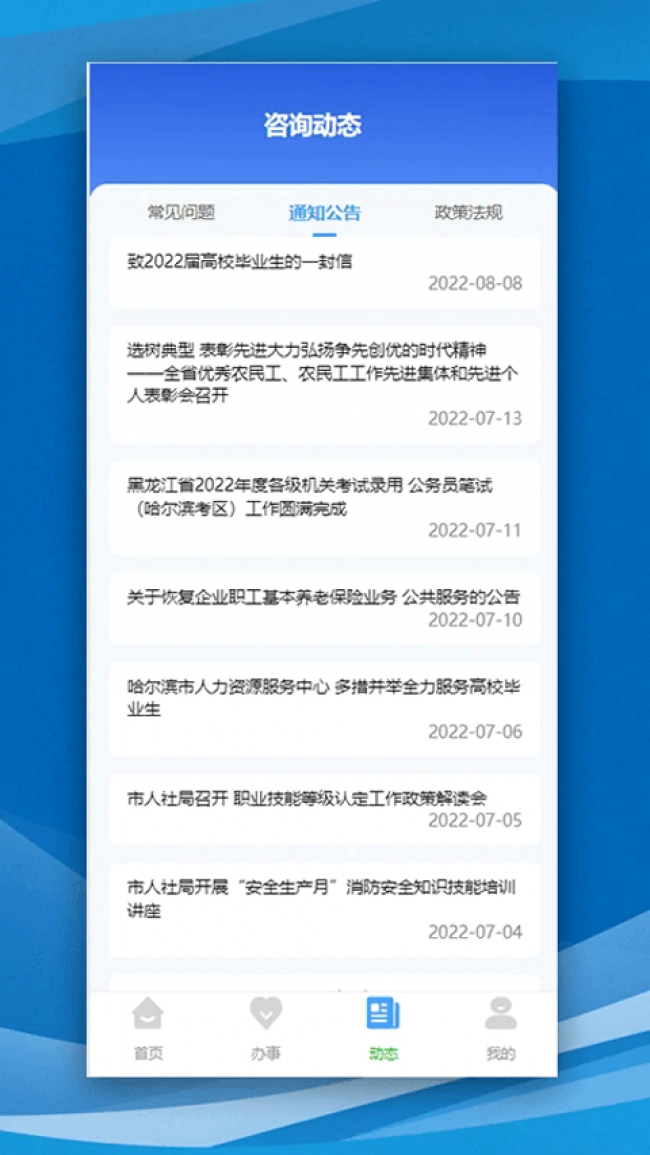哈尔滨智慧人社app下载是一款专门为哈尔滨当地人打造的便民社保服务软件,能够为当地居民提供最便捷的人社事务办理服务,通过先进的人脸识别技术,让你可以安全的进行登录享受到更多服务,其中就包括养老资格认证、失业登记以及社保卡网上办理等多种服务,平台功能可以覆盖社保咨询、缴费以及政策学习,让用户不需要在反复多吃的进行线下办理,只需要在家里通过手机就可以完成所有的操作,同时还能在里面获取最新的社保政治信息,进行在线咨询和建议,随时掌握自己的社保状态。喜欢的伙伴们快来下载试试吧。