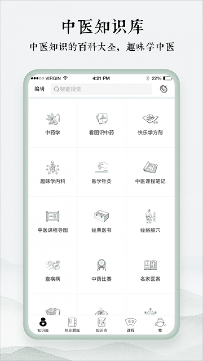 1、中医通app囊括中医各类学科基础知识,看图识中药,课程笔记、思维导图、趣味学习等常用功能。