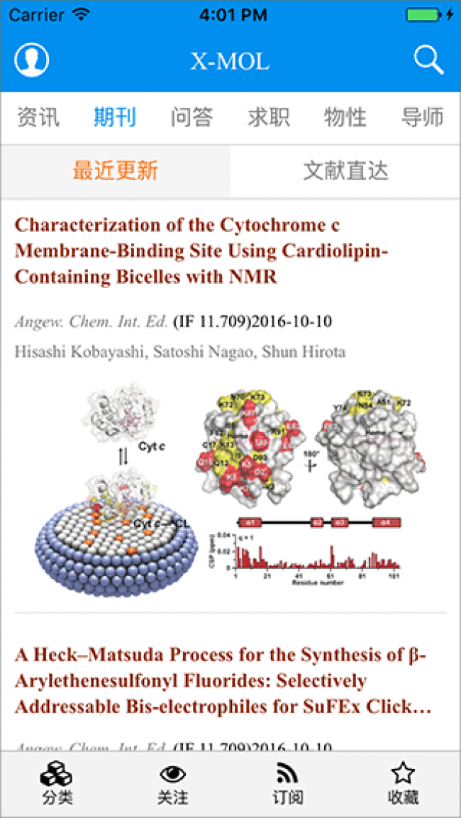 包括Nature、Science、Nature Chemistry、JACS等数十种高水平期刊最新论文的信息,图文每日更新,看文献更方便,一目了然。如果您还想看到其它期刊,请联系我们。