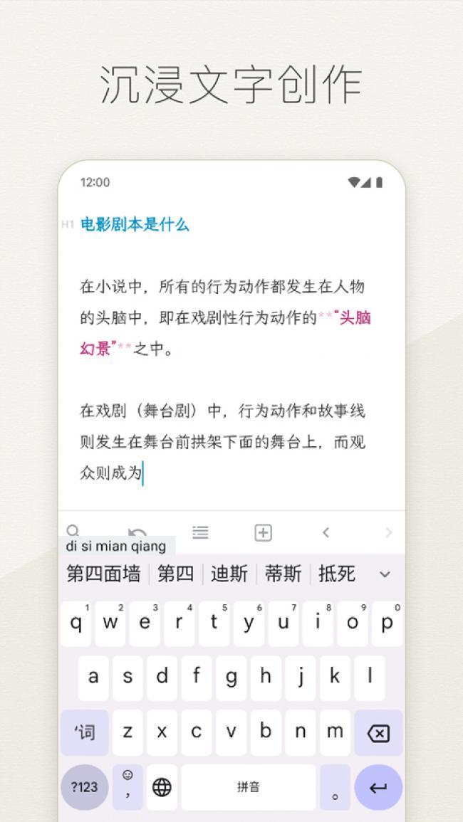 1、极简设计,纯粹的写作环境,帮助创作者排除一切干扰,专注写作本身。