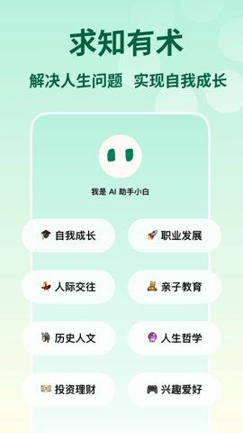 问小白下载免费版是一款提供强大的智能AI问答助手功能服务平台,它为用户提供了稳定的性能,简洁直观的界面,操作简单好上手,内容板块分类明确,所有的功能都是免费的,它可以回答您的任何问题,轻松满足您的一切需求,无论是日常生活的吃喝玩乐,衣食住行,还是学习中的帮助,工作中的需求都可以,不仅仅可以制作PPT,还可以解决变成问题,以及精准的回答您的生活问题,只需要对它输入任何内容即可得到全方位的回答,涵盖了科技,教育,健康,娱乐等多个领域的知识,来这里进行问答都可以满足,喜欢的伙伴们快来下载试试吧。