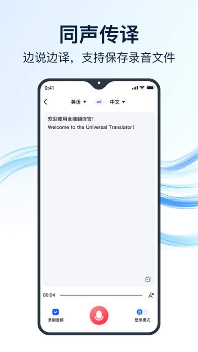 2、输入语音即可进行翻译,系统智能识别语言,快速转换。