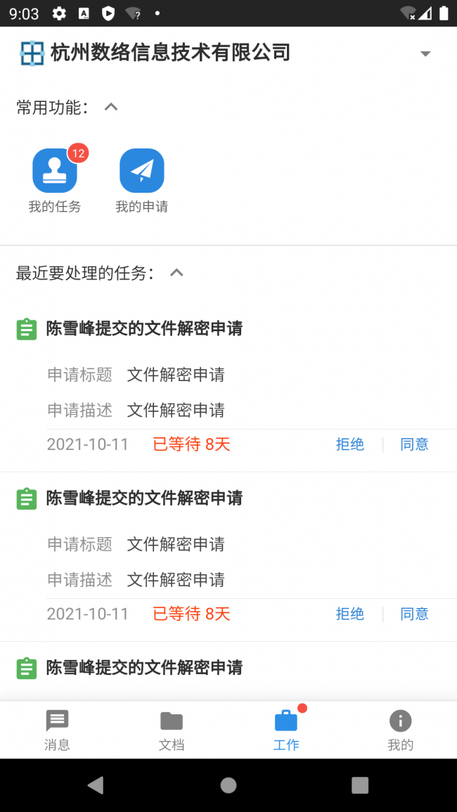 数络密盾app下载是一款十分好用的文件加密和管理软件,旨在为各大企业和个人提供最优质的文件机密保护,通过它可以有效的提高用户办公的效率跟便利性。并且其中还有移动审核功能,明确完成审批任务,还可以随时安全保护电子文档,而且还有着在线申请功能,可以自由编辑申请信息,根据提示办理就可以快速的进行申请,便捷的使用其中各种功能,同时平台还能实时的推送消息,可以自主浏览消息列表,让你可以及时的查看和处理相对应的事项,打造出一个安全高效的移动办公平台。喜欢的伙伴们快来下载试试吧。