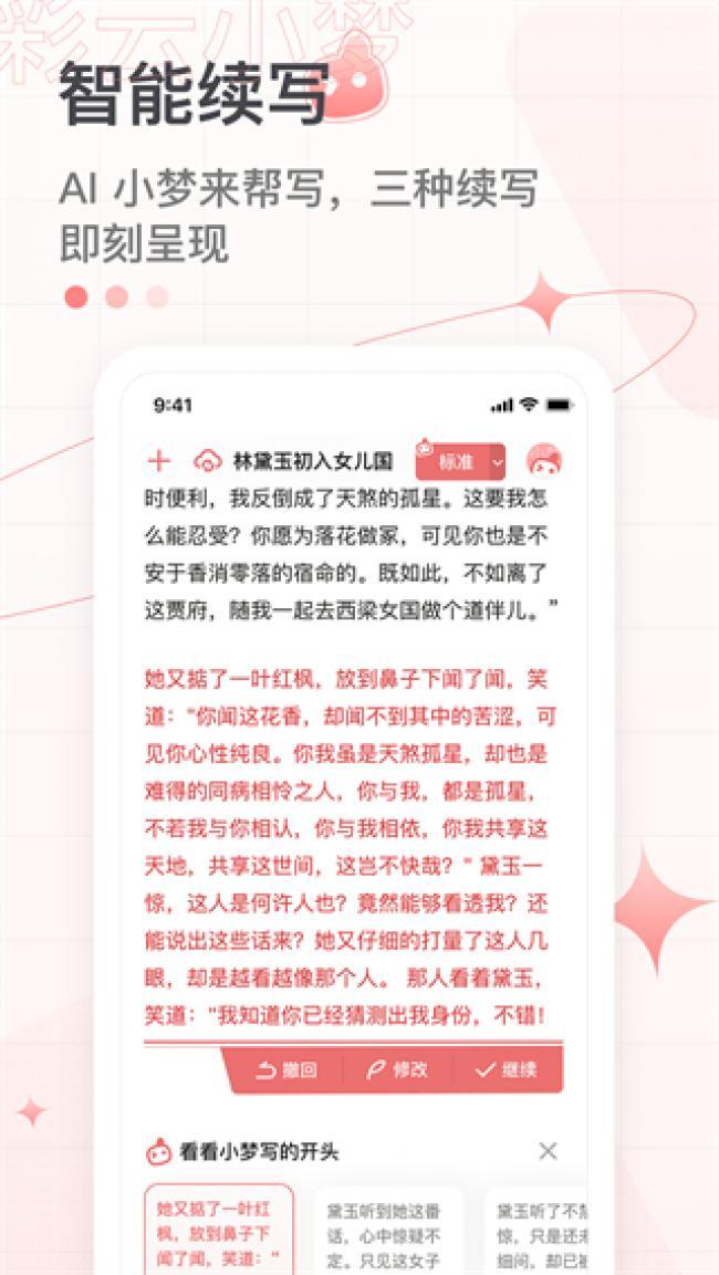 1、只要写一段故事情节,彩云小梦app官方版下载就可以为你续写不同的故事。