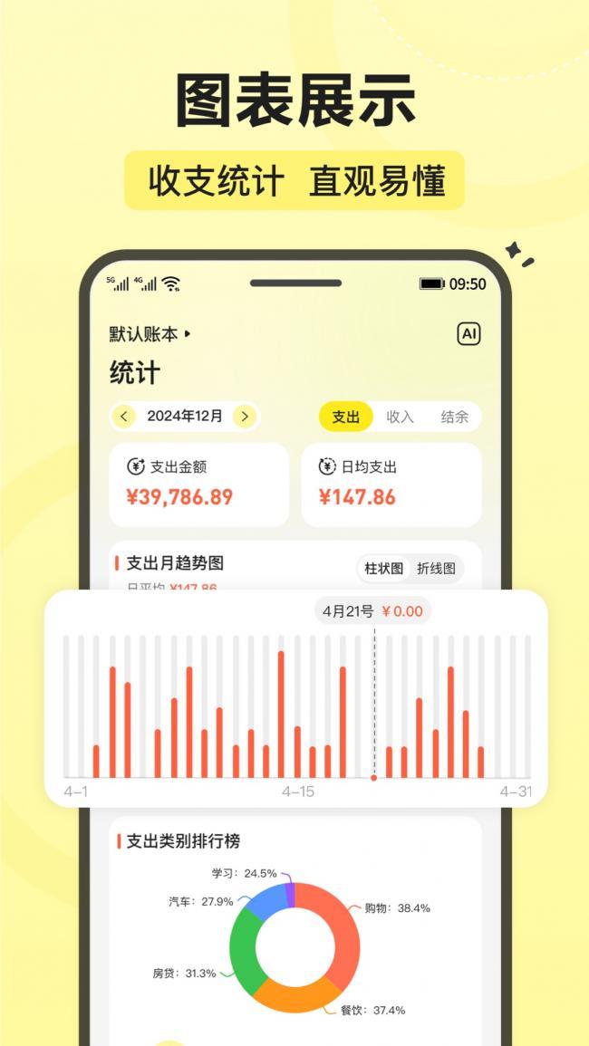 3、自动生成收支统计图表,消费情况一目了然,帮您迅速掌握资金流向。
