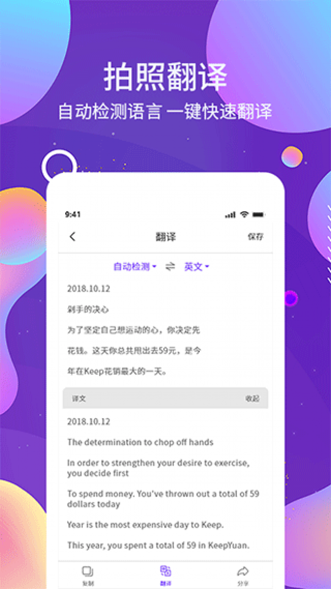 3、识别文字后可直接在APP内翻译或编辑,如扫描英文文档后实时转为中文,并修改译文措辞,流程无缝衔接。