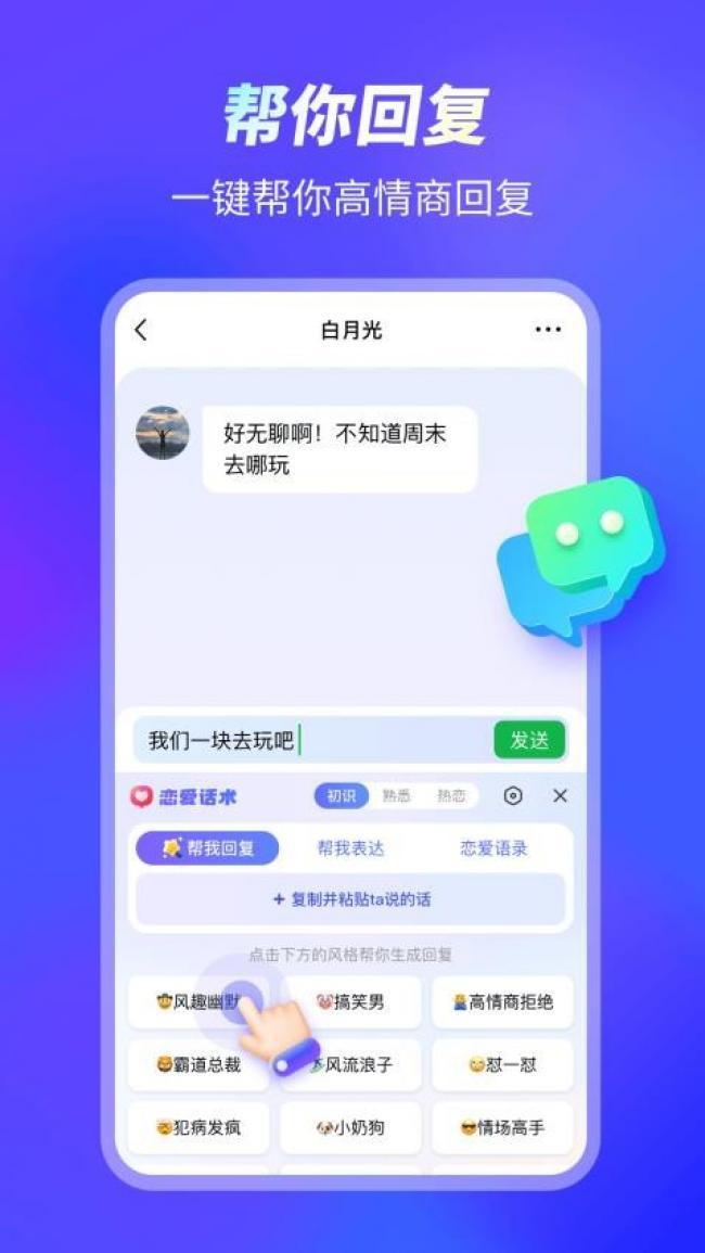 2、为用户提供合适的恋爱用语,帮助自信地表达感情,进高效沟通。