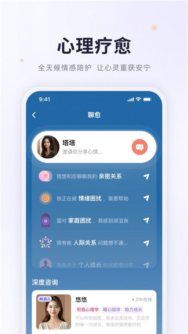 2、随时在线倾述你的情感问题来获取专属建议解决问题守护心理健康。