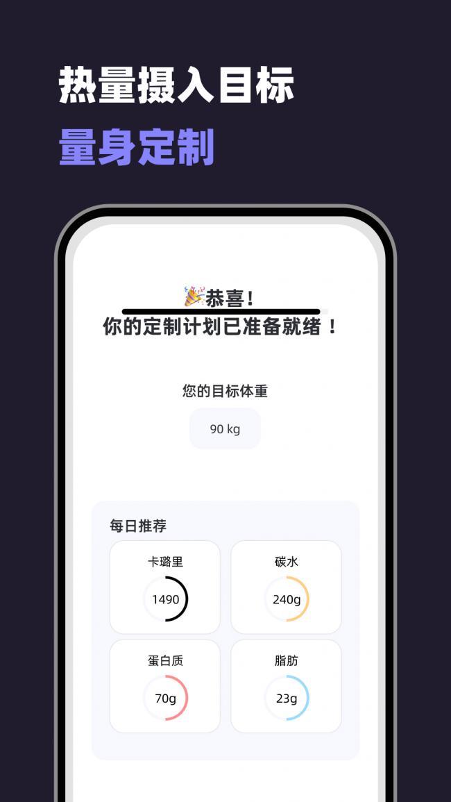 3、根据用户在不同阶段和健康目标,可以进行个性化设定。