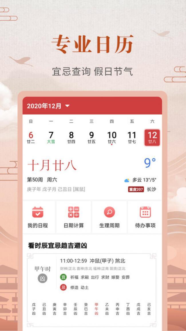 2、提供公历、农历、天气、放假时间、黄历、生日,节日、日程记事、生理周期、资讯等日历实用功能。
