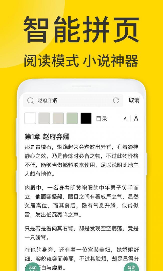 2、智能识别网页正文,支持点击翻页、切换背景、自动加载下一页。