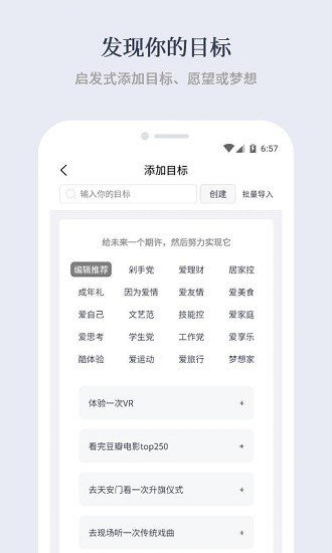 2、能够为用户推荐一些热门的目标,点击一个目标即可快速添加。
