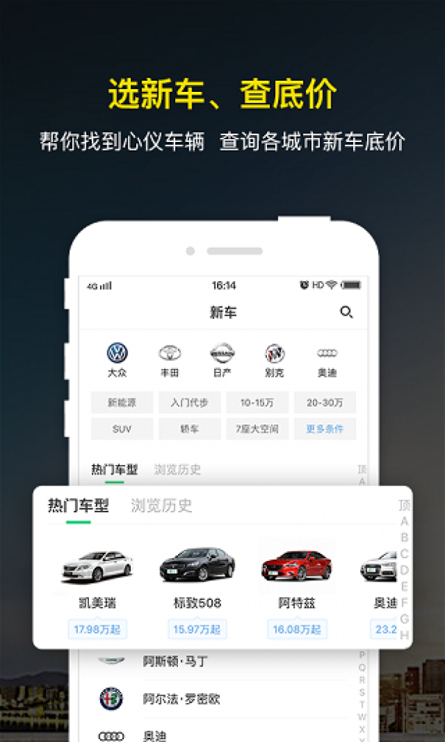 2、可以在该平台中车型对比,新车询低价,高价卖车,全网成交。