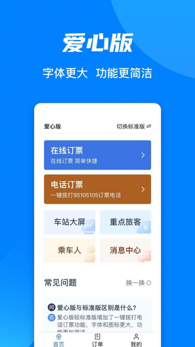 铁路12306下载并安装是一款作为中国铁路集团打造的高质量购票服务平台,在线即可完成购票服务,皆在为全国用户提供安全,便捷,高效,专业的一站式购票体验,几分钟即可完成任何地区的票务购买,在线即可支付,支持微信,支付宝,银行卡,云闪付等类型,并且还可以在线完成改签,退票,订单的查询以及乘车人设置管理等操作都可以轻松满足,软件的操作非常简单,只需要一键注册登录,即可轻松开启愉快的购票服务,再也不需要到线下火车站排队购票,没有那么多复杂性,并且网上购票会更加安全哦,喜欢的伙伴们快来下载试试吧。