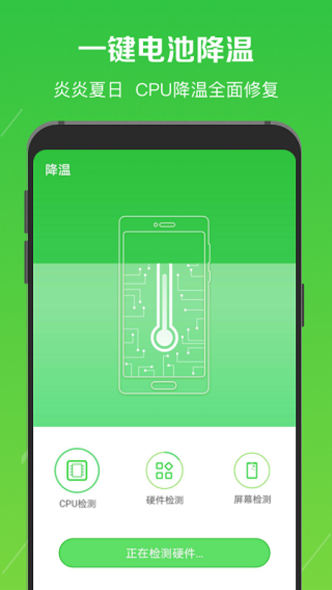 电池降温医生下载安装是一款专门为安卓手机设计的电池优化和降温软件,通过它可以随时监测手机电池的温度情况,帮助用户快速识别出电池消耗过快的原因,当你在玩游戏或者看视频的时候手机越来越烫就可以通过其中的一键降温功能,帮助手机进行全面的降温,将手机中不需要的后台程序一键清理掉,减少电池的使用负担,能够满足多种场景下的使用需求,同时还可以根据不同的耗电数据分析为你提供最优质的电池使用方案,有效的延迟电池使用寿命,而且它还会在你手机息屏之后自动关闭一些后台运行程序,让电池不会受到过度的损耗。喜欢的伙伴们快来下载试试吧。