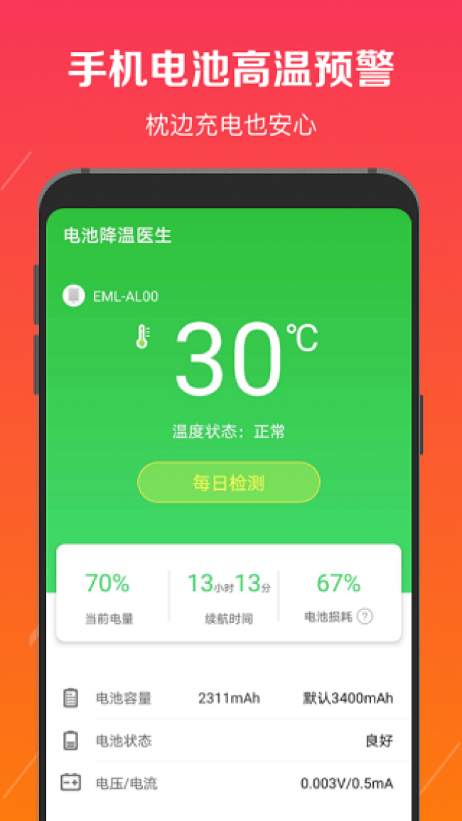 3、实时监控手机温度,如有异常及时发出高温预警。