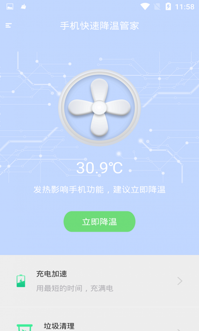 1、手机快速降温管家app下载支持充电加速,加快充电的速度,用短时间充满电量。