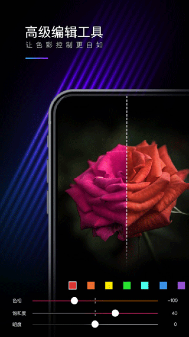 2、强大的图片编辑功能。除15种基础调节工具外,还支持曲线、色调分离、HSL等调色工具。