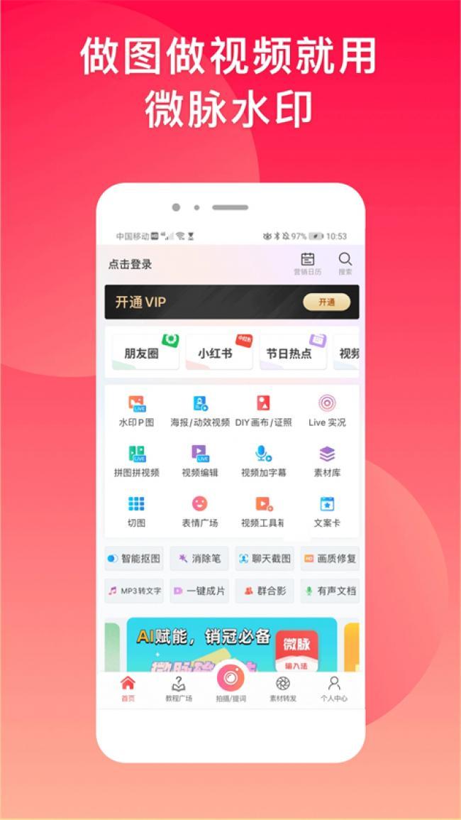微脉水印相机官方免费下载是一款作为日常生活中必不可少的水印作图工具,专为广大微商用户打造,对于微商的日常工作中,有着朋友圈的营销,作图以及视频等素材文案都需要进行批量修改以及发布,而微脉水印相机可以帮助大家轻松添加任何水印,一键即可生成所有,并且海量的优质水印模版等您来参考,也可以根据个人的需求来设计出更加精彩纷呈的水印,功能非常丰富,还可以自由使用滤镜,音乐,变速,翻转,添加字幕,打马赛克等等都可以满足不同用户的使用需求,轻松提高工作效率,提高生活质量,备受用户们的青睐,喜欢的伙伴们快来下载试试吧。