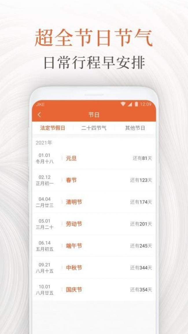 2、24节气健康养生贴士、节假日提醒、农历查询、日历记事、行程备忘,一应俱全。