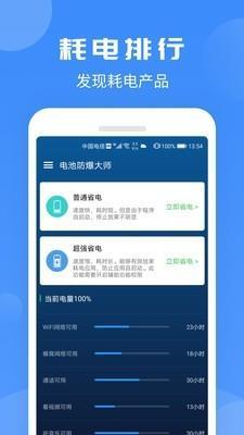 电池防爆大师免费下载是一款非常实用的电池管理软件,能够为手机电池提供保护和优化服务,通过它可以让用户在使用过程中更加详细的了解电池的使用情况,它可以将所有应用耗电量从上往下的逐一排列,让你可以更加直观的了解到耗电最多的是哪些应用程序,帮助用户更好的进行控制耗电量,并且还会根据你的使用情况快速生成一个手机电池优化保护方案,有效帮助用户提升电池续航能力,帮助用户修复自己的电池,延长电池使用寿命,通过其中的功能,让用户的手机电池得到更多帮助,帮助你快速解决电池耗电快的问题,高效的管理自己电池问题。喜欢的伙伴们快来下载试试吧。