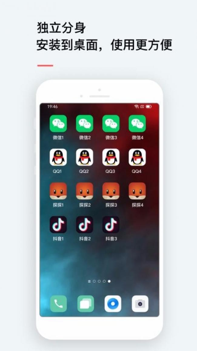 1. 轻松实现微信双开,微信分身,告别社交账户来回切换的烦恼,让你尽情分享,放肆聊天。